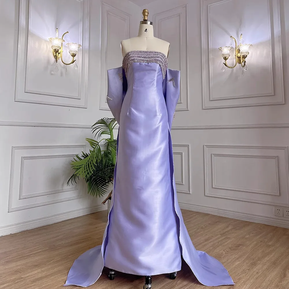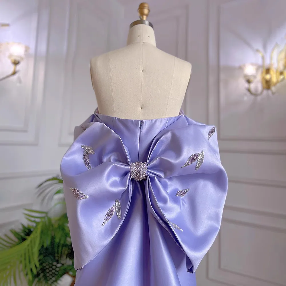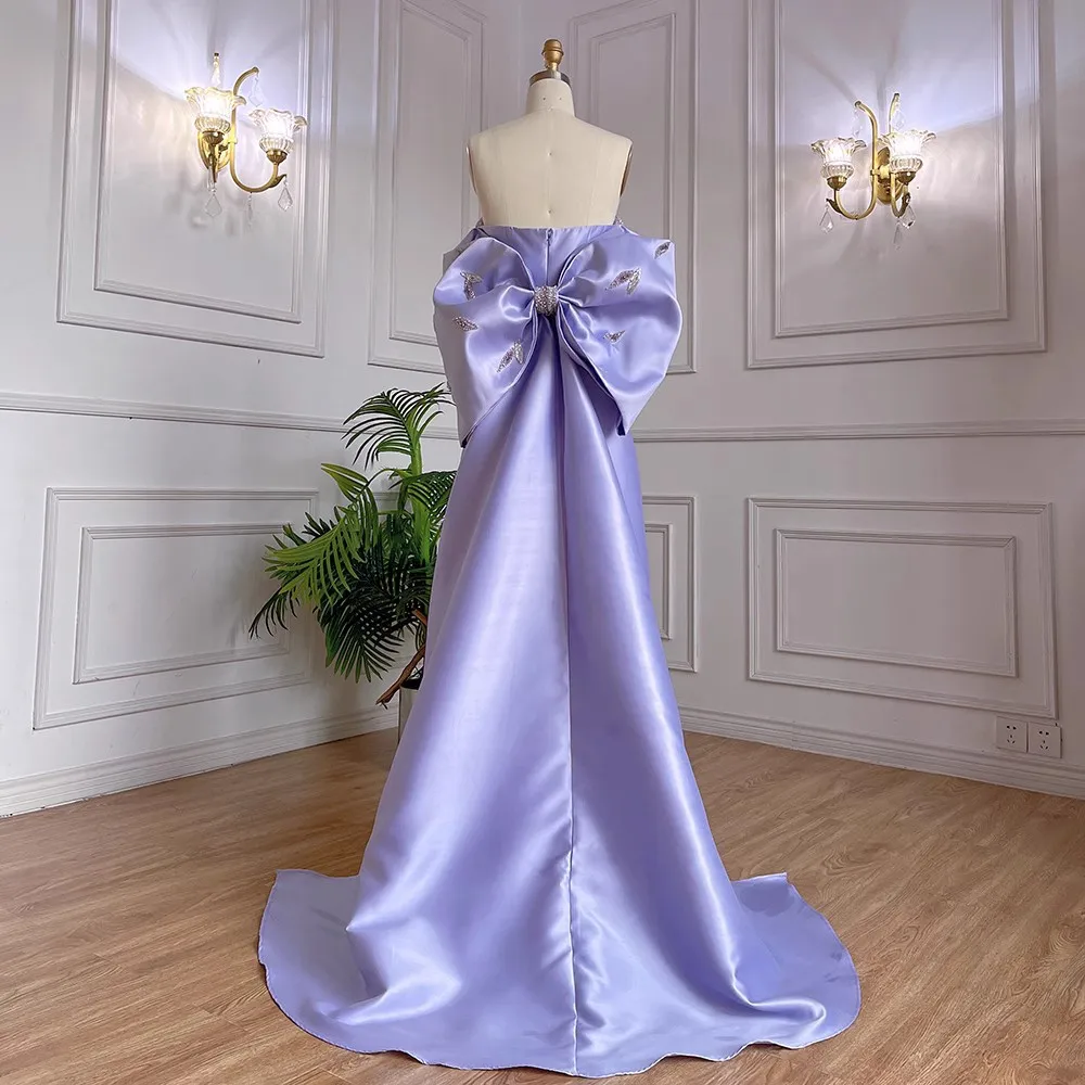 Luxurious and Elegant Satin off Shoulder Heavy Beaded Slim Fitted Bustier Mermaid Banquets Evening Gown with Large Bow Train